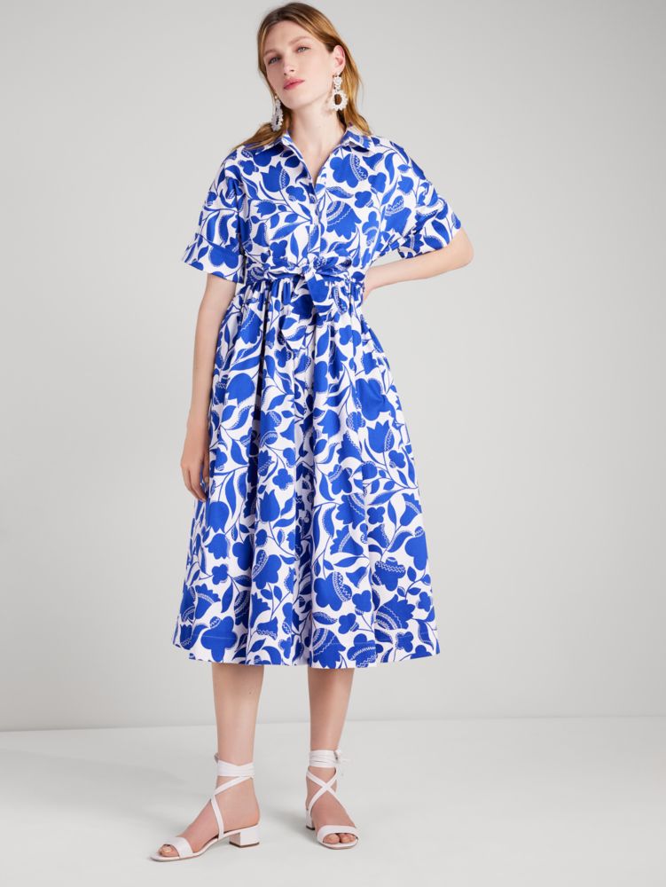 Kate Spade Daisy Silk Blend Garden Midi Dress In Blue Lyst